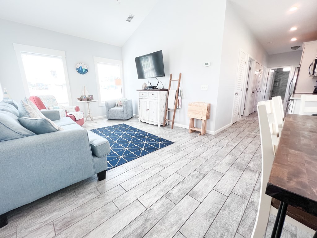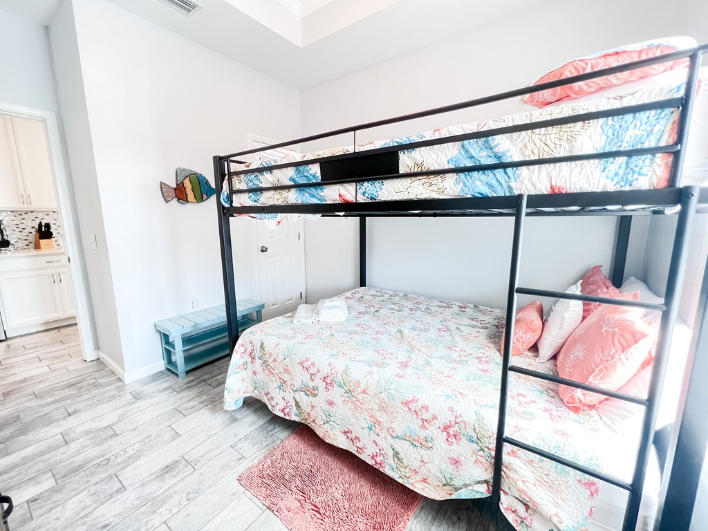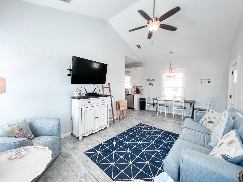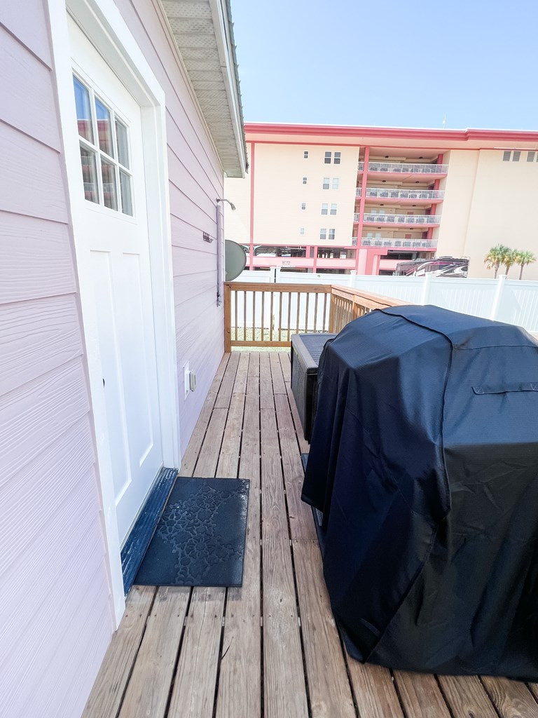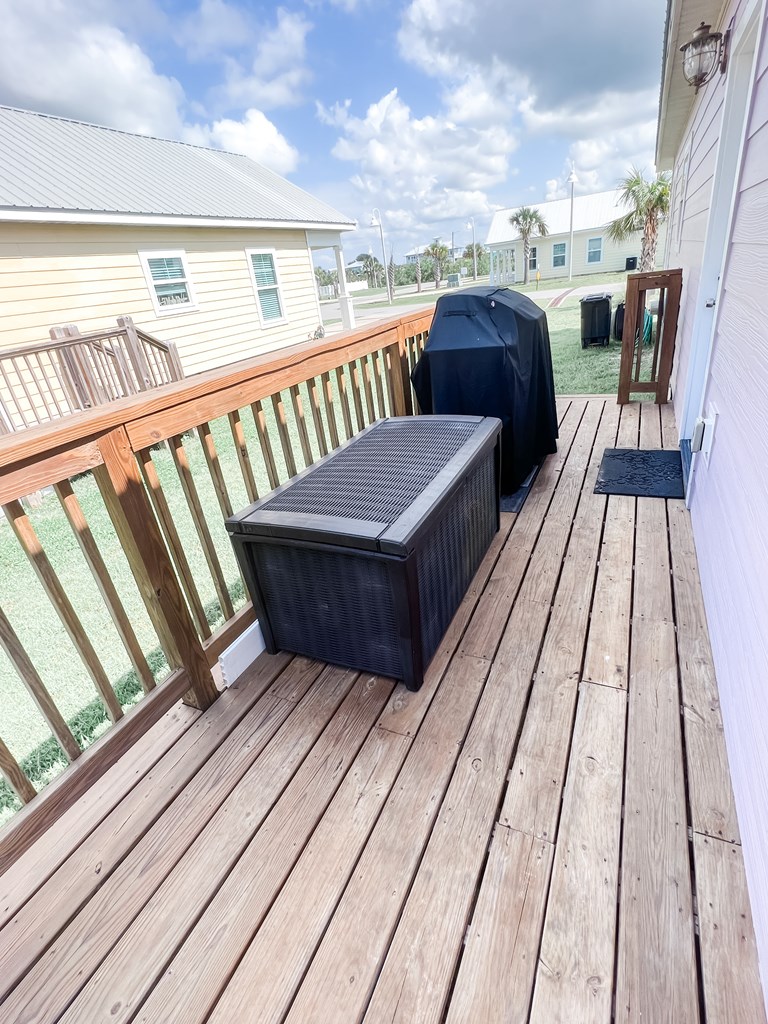 It has been a year since one of these cottages has become available on the market, so do not miss this opportunity. This fully furnished home is conveniently located only 150 yards from a beautiful white sand beach. Currently on the rental market, it has the potential for further rental opportunities. The home comfortably accommodates up to 8 people and is situated in the X flood Zone. The tile throughout the home has a gray wood-like appearance, creating a cohesive look. Both the interior and exterior have been recently painted. The kitchen features quartz countertops and is fully equipped with all the necessary amenities, making it a turnkey rental property. The guest bedroom is furnished with queen-sized bunk beds, offering ample space and storage. This room, complete with a TV, is ideal for children or additional guests. The guest bathroom includes a tiled tub/shower combo. The Master Bedroom provides plenty of room to relax, boasting a spacious closet, TV, and an en suite bathroom with a large walk-in tiled shower. For outdoor cooking, there is a back deck equipped with a gas grill. This home is a prime investment opportunity, with a Gross Rental Income (GRI) of over $41,000 in 2021 and over $37,000 in 2022. It is also the perfect size for a small family or a weekend getaway. Additionally, if you enjoy having access to a pool without the responsibility of maintenance, this property offers a community pool. The meticulous upkeep of this property should not be overlooked. Don't miss out on this exceptional opportunity!