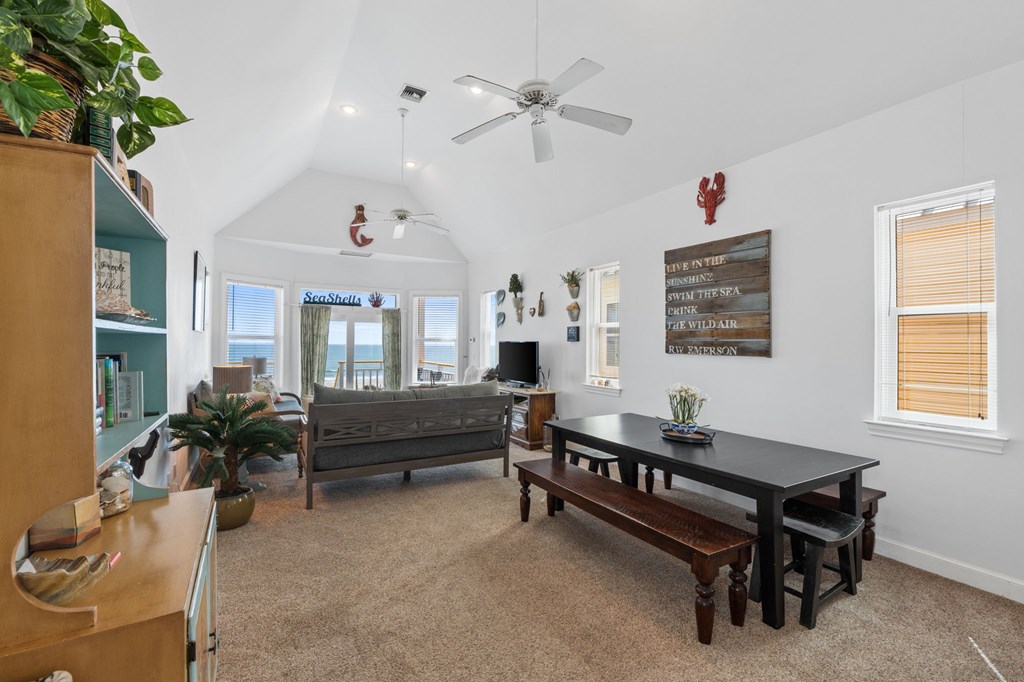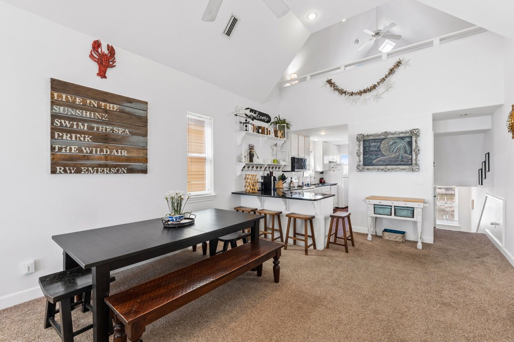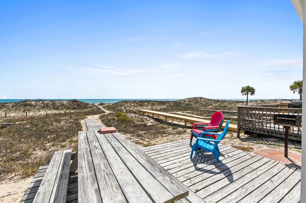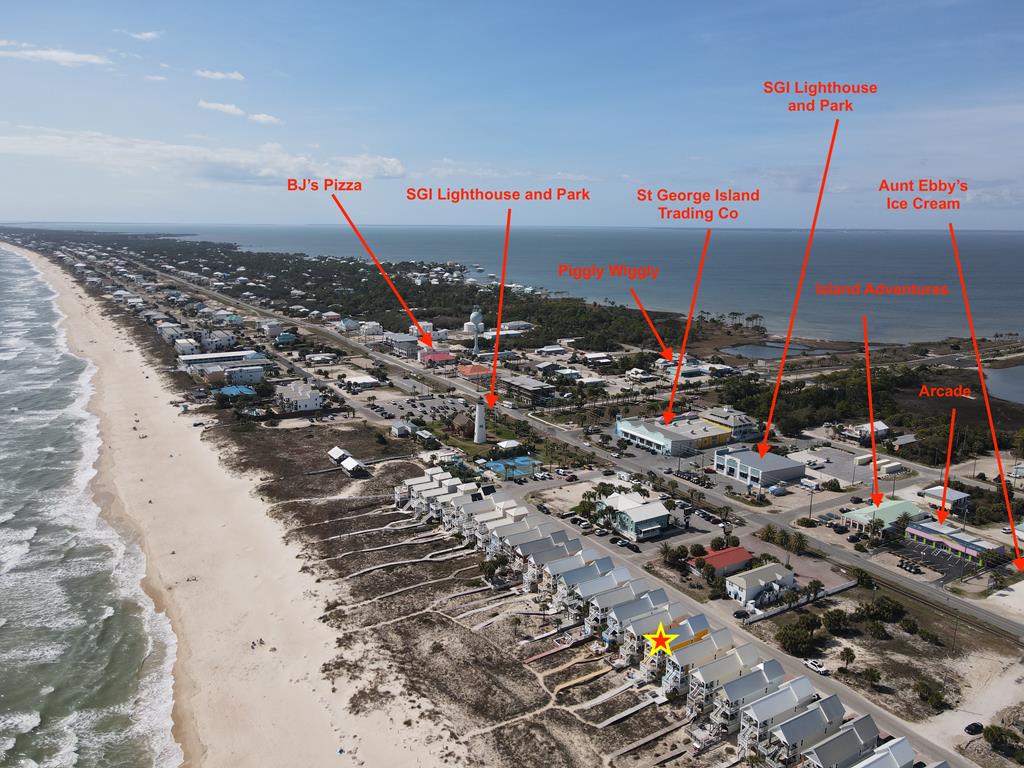 Welcome to Adirondack, a beachfront retreat on the sugar-white sands of St. George Island in Franklin County, Florida. This 3-bedroom, 3-bath home offers just under 1,600 sq ft of living space and is being sold fully furnished and turnkey, ready for immediate use or continued vacation rental. Centrally located on the island, the home is within walking distance to shops, restaurants, playgrounds, and the paved hike and bike path, with St. George Island State Park's miles of natural shoreline just a short drive away. The main level features two bedrooms, including a Gulf-view primary suite with a California King bed and jetted tub, plus a second bedroom with a queen bed and private bath. A 12-foot-high open loft provides two sets of bunk beds, and the living room includes two twin daybeds, comfortably accommodating larger groups. The bright, open living area faces the Gulf and creates a relaxed coastal setting for gathering and entertaining. Outdoor amenities include a private boardwalk to the beach, outdoor shower, park-style grill, large picnic area, and two spacious Gulf-facing balconies ideal for enjoying sunrises and sunsets. Currently self-managed as a vacation rental on VRBO under the name Adirondack, this property offers an established rental opportunity or a private second home in one of Florida's most laid-back coastal communities. Owners have made significant recent improvements, including a new roof, hardie board exterior siding, and impact doors and windows. Don't miss this opportunity to enjoy your best Island Life in a convenient location.