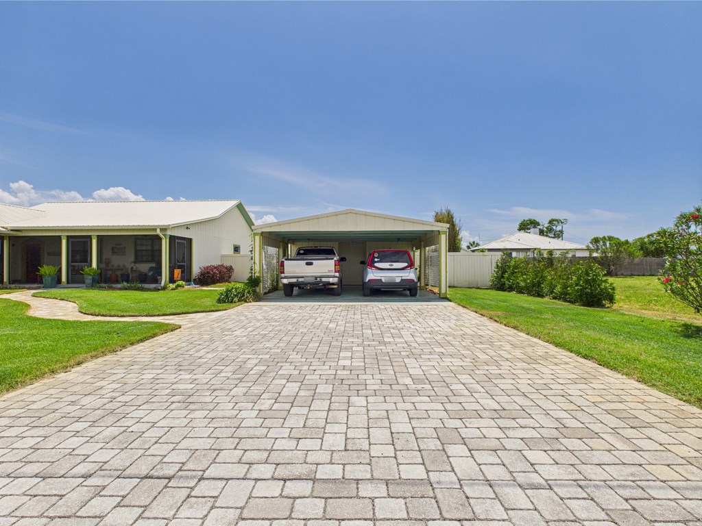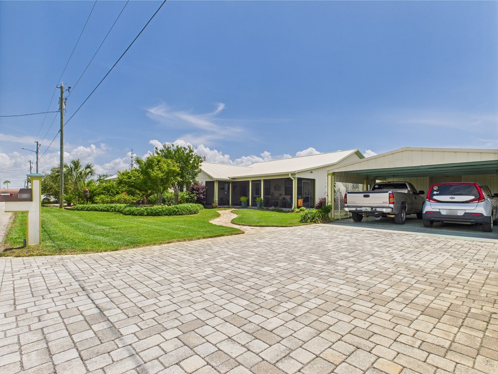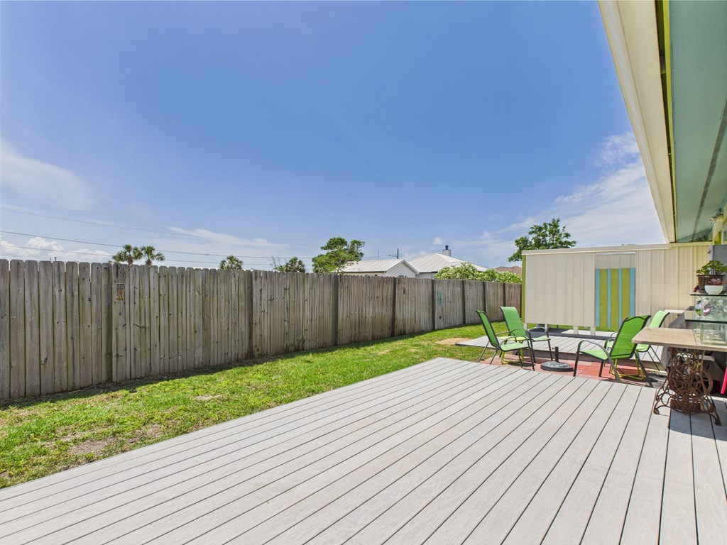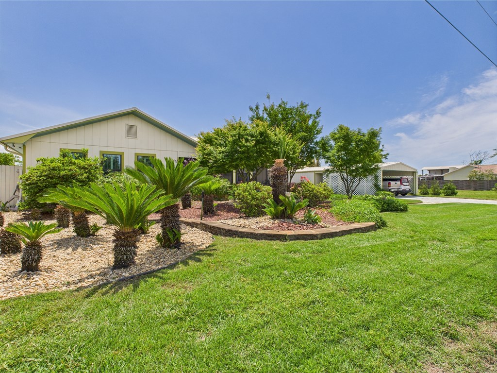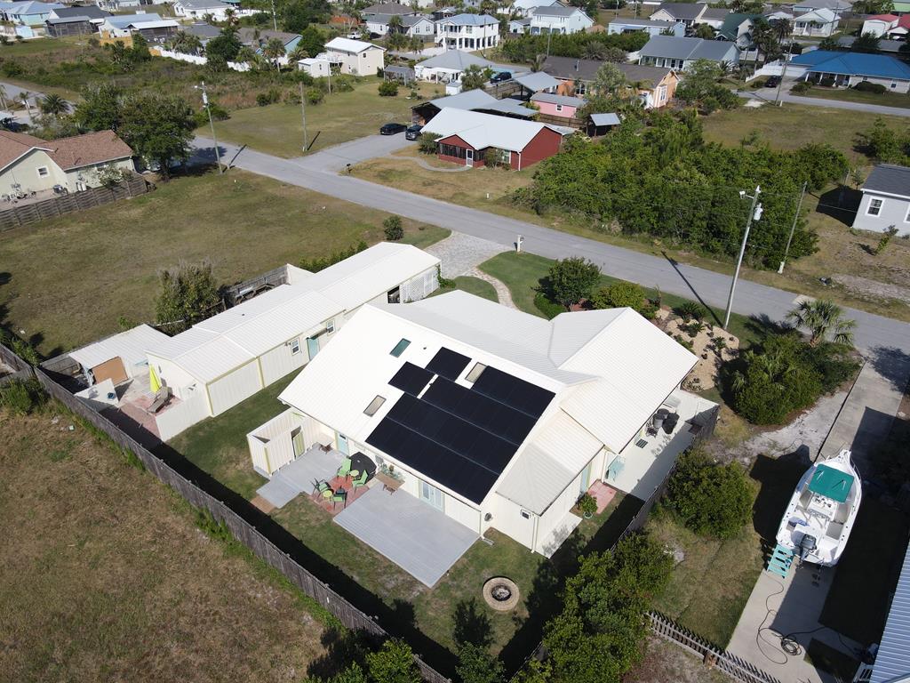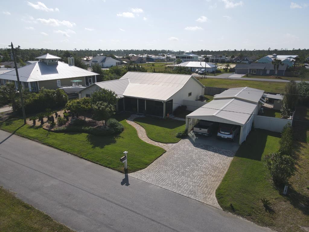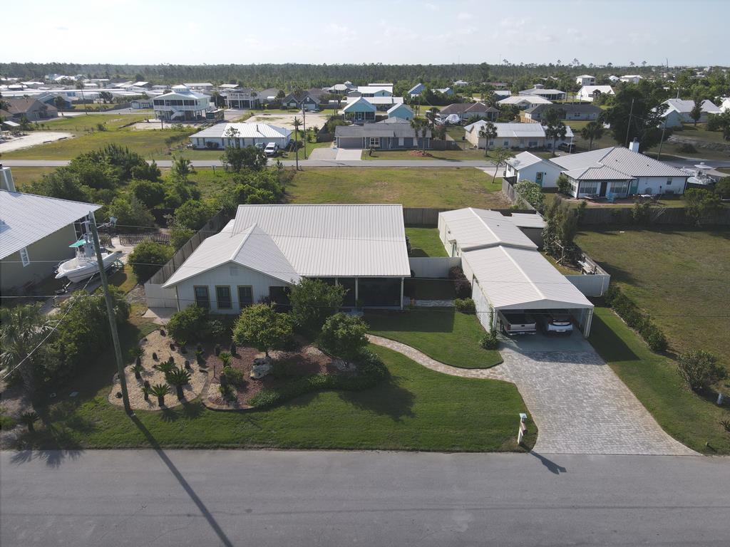 Welcome to 418 Arizona Drive in beautiful Mexico Beach -- a spacious coastal retreat offering over 3,000 sqft of heated and cooled living space on a .28-acre lot in the desirable X flood zone. This 3BR/2BA home features a guest cottage with a kitchenette, ideal for visitors or extended stays. Inside, enjoy a large kitchen with a gas stove, island, walk-in pantry, and both formal and informal dining areas. The main living room boasts vaulted ceilings and hardwood floors, while a separate family room includes custom-built-ins. The oversized master suite features a massive walk-in closet, additional closet space, and a walk-in shower, along with direct access to the laundry room. You will spend plenty of time outdoors between the screened front porch, open back porch with outdoor shower, beautifully landscaped yard with sprinkler system, fire pit, and fenced backyard with gated boat parking. Additional highlights include a paver driveway with covered carport, heated/cooled storage room, lawn shed with bonus storage, and a fully equipped workshop with shelving and electricity. This property is the perfect blend of comfort, function, and coastal charm. Call today!