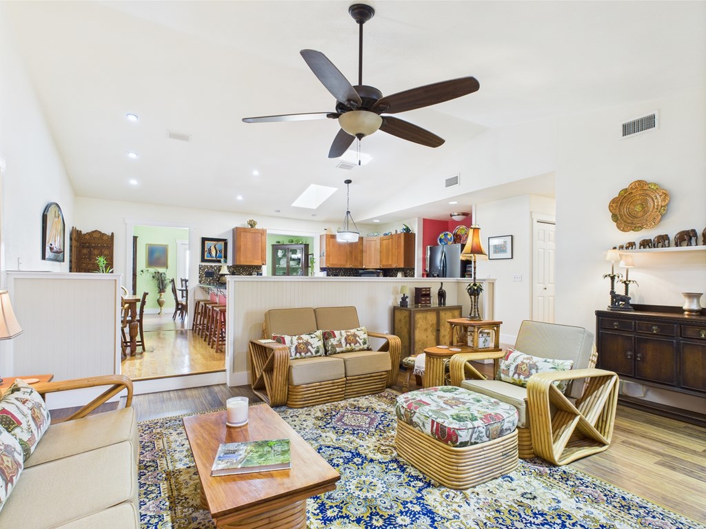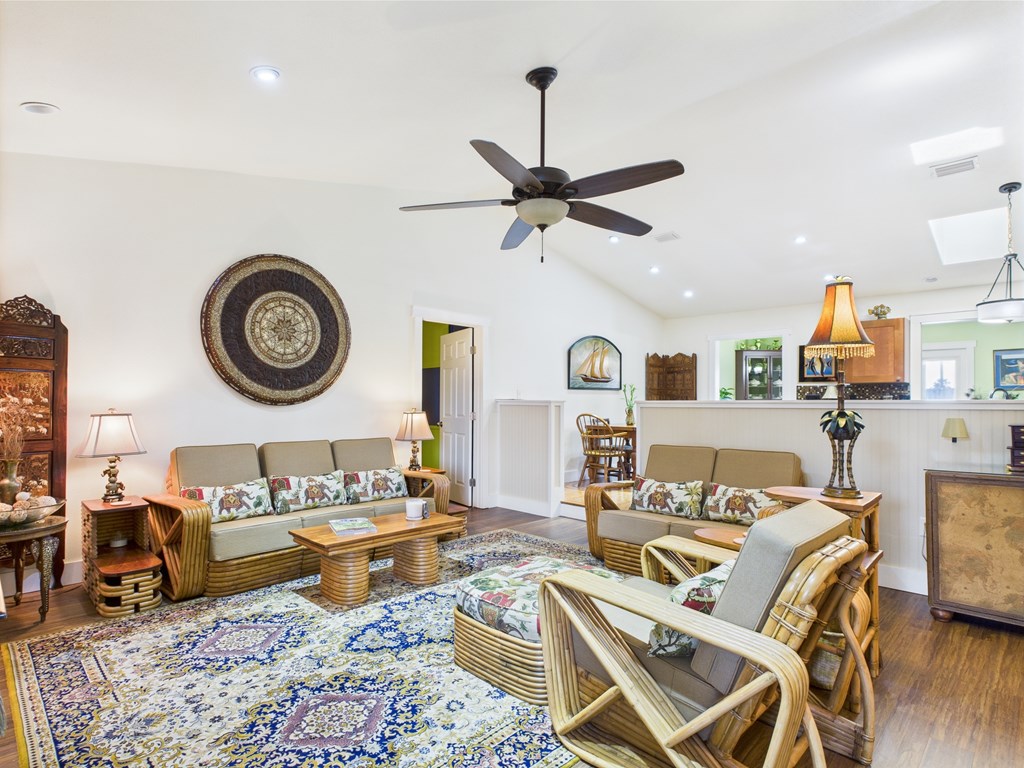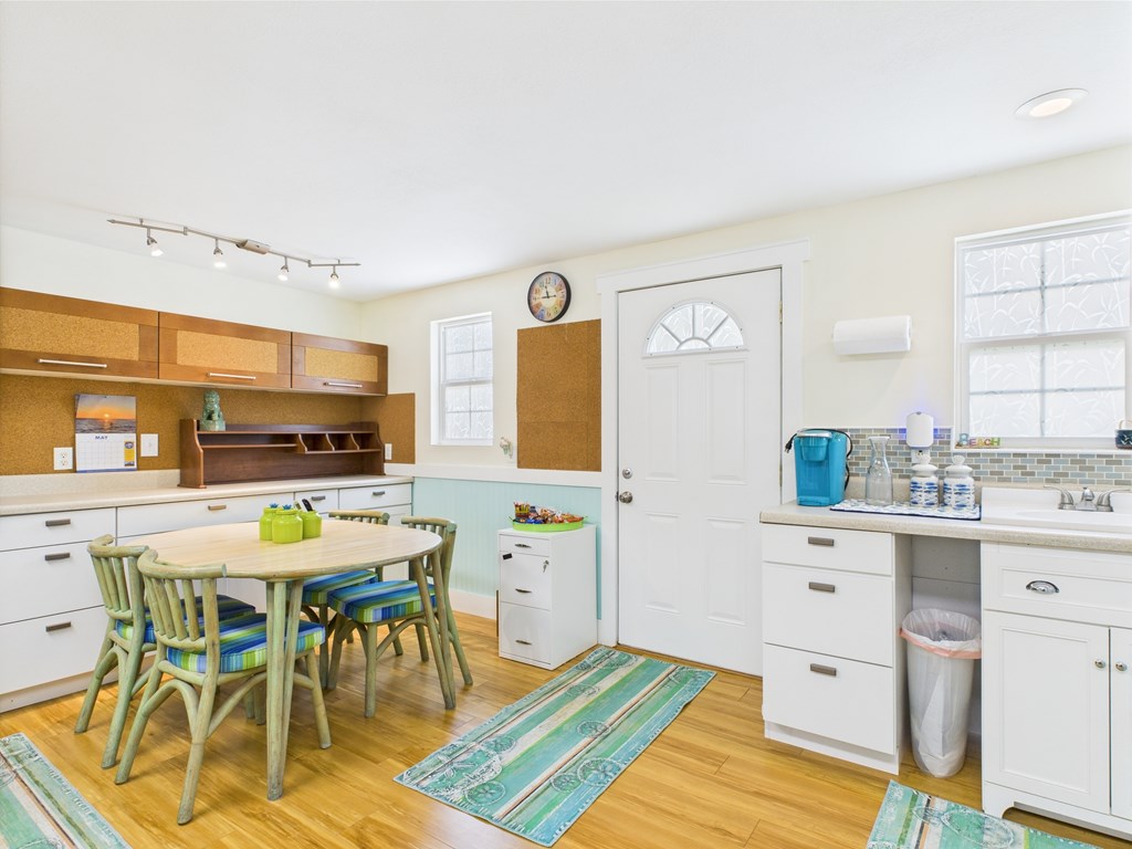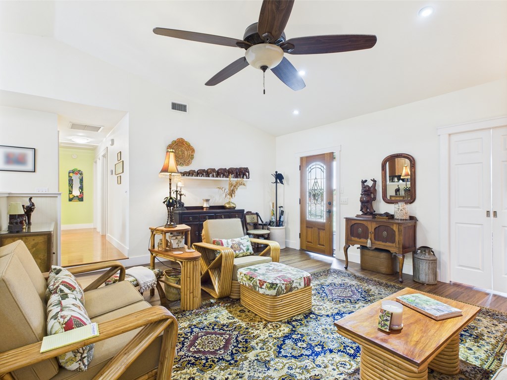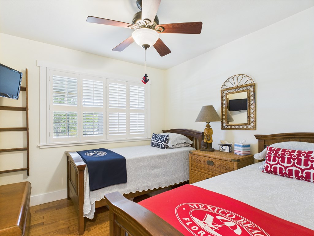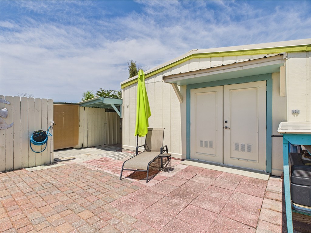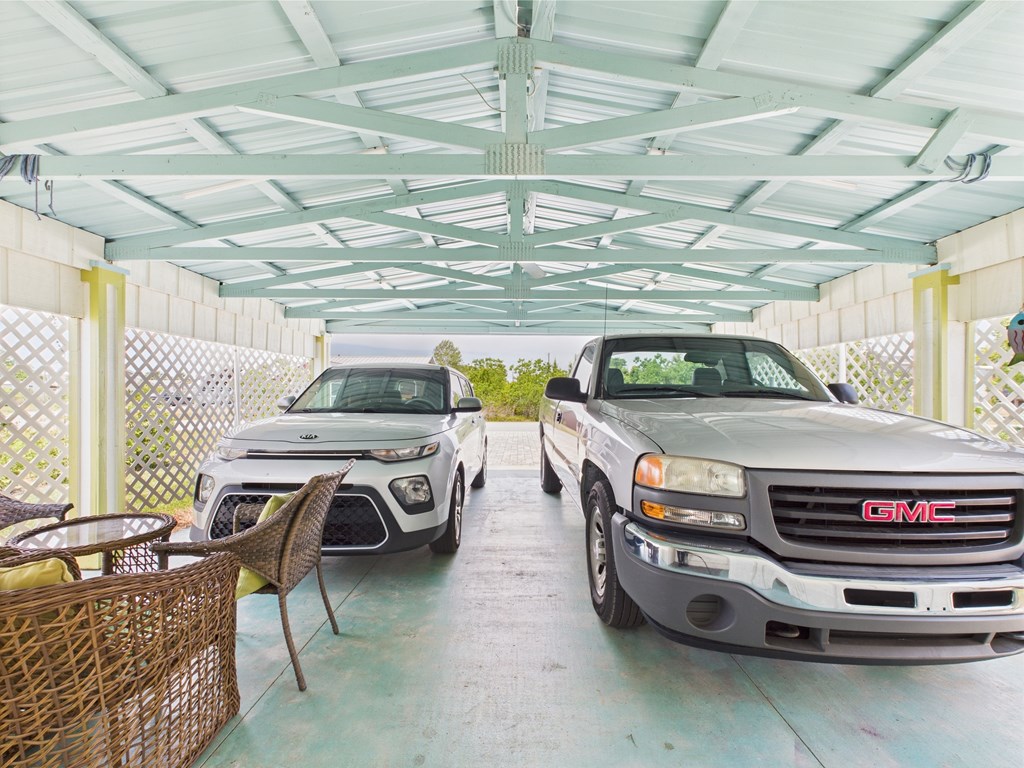 Welcome to 418 Arizona Drive in beautiful Mexico Beach -- a spacious coastal retreat offering over 3,000 sqft of heated and cooled living space on a .28-acre lot in the desirable X flood zone. This 3BR/2BA home features a guest cottage with a kitchenette, ideal for visitors or extended stays. Inside, enjoy a large kitchen with a gas stove, island, walk-in pantry, and both formal and informal dining areas. The main living room boasts vaulted ceilings and hardwood floors, while a separate family room includes custom-built-ins. The oversized master suite features a massive walk-in closet, additional closet space, and a walk-in shower, along with direct access to the laundry room. You will spend plenty of time outdoors between the screened front porch, open back porch with outdoor shower, beautifully landscaped yard with sprinkler system, fire pit, and fenced backyard with gated boat parking. Additional highlights include a paver driveway with covered carport, heated/cooled storage room, lawn shed with bonus storage, and a fully equipped workshop with shelving and electricity. This property is the perfect blend of comfort, function, and coastal charm. Call today!