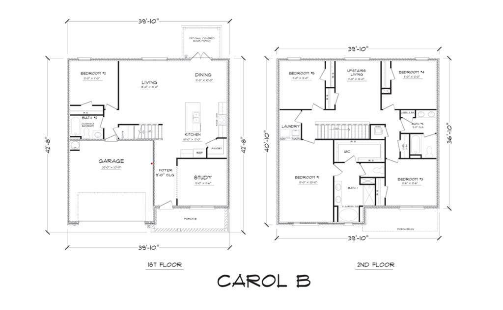 The Carol is an exceptional 5 bedroom, 3 bath home. As you enter this home, you will find an office to the right and garage to the left. Continuing down the entry way of the home, the kitchen will be directly to the right at the end of the entry way. The family room is open and spacious connected with the dining area leading to the back porch. Bedroom 2 is situated to the left right off the family room along with a bathroom situated across from the room. Upstairs you'll find a spacious bonus room, with bedroom 4 and 5 connected to it. Bath 3 down the hall to the right, also leads to bedroom 3. Upstairs you also have bedroom 1 with double vanity, walk in closet, and separate Garden tub and shower.